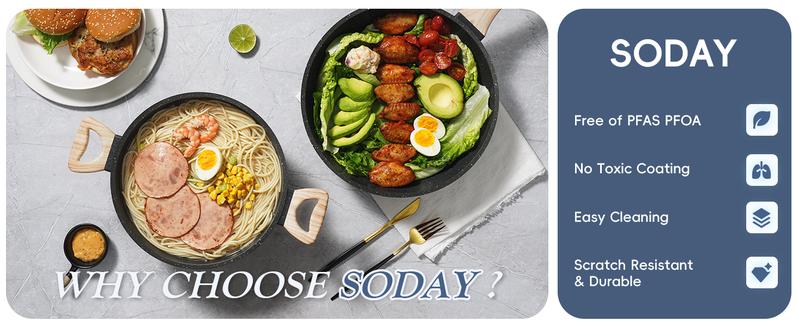 SODAY nonstick cookware set promises to be your most cherished kitchen investment, unlocking the gateway to a world of gourmet possibilities. Indulge yourself in the art of cooking, and let our pots and pans elevate your culinary journey to a whole new level of excellence.